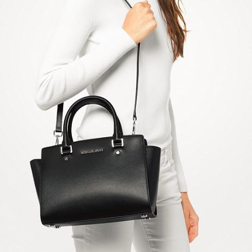 Michael Kors Selma 系列 十字纹中号手提包 经典纯黑