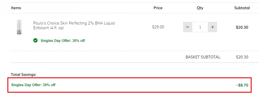 SkinCareRx 现 PAULA'S CHOICE 宝拉珍选 水杨酸护肤 无门槛7折,需要使用优惠码:SINGLE30 ,优惠随时可能失效,满$49免美国境内运费。立即购买>>