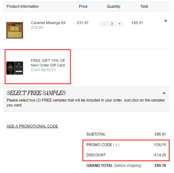 在购物车点击add a promotiona code,输入优惠码YOU15,点击submit,即会跳出问卷提醒,填写完毕后,回到购物车输入优惠码YOU15,即可享受折扣,部分品牌不参加