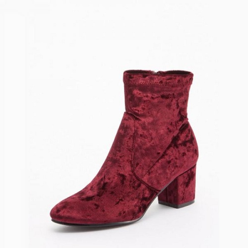 Flat Apartment 尖头丝绒格纹拼色羊皮粗跟短靴