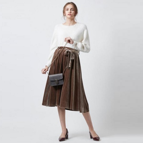 天鹅绒中长喇叭裙 附赠腰带 3色可选