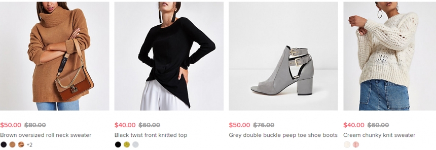 River Island 现有 精选 秋冬美衣服饰鞋包 低至7折 优惠活动,无需用码,优惠随时可能失效,美国境内满$50免运费。立即购买>>