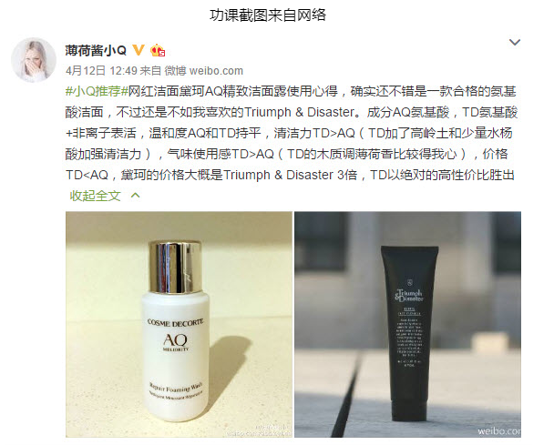 Triumph & Disaster是一个男士护肤品牌,看上去蛮酷的。虽说是男士品牌,但是这款洁面却是男女都可以用的,配方温和,清洁和去角质,即使是**的皮肤也不会干燥或刺激。琼崖海棠油,薄荷油和膨润土轻轻溶解尘垢,同时提亮肤色,软化皮肤,提高皮肤弹性。清新的薄荷香味令人好感倍增。薄荷酱小Q*~