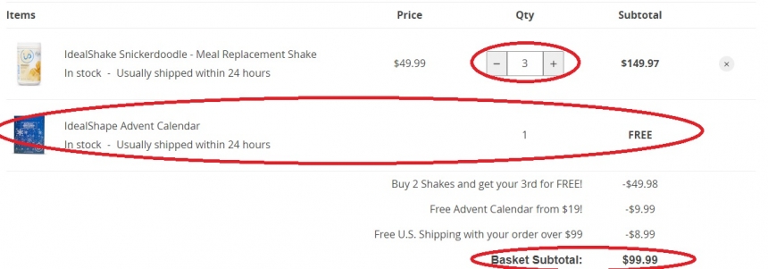 IdealShape 现有精选多款代餐奶昔,买3付2+送巧克力日历!有效期至北京时间 2018年12月19日12点59分,满$99免美国境内运费,支持转运。立即购买>>