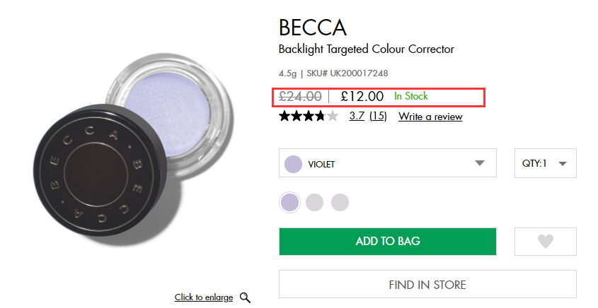 Space NK UK 现有 becca 色彩校正遮瑕 紫色款,原价£24,现特价£12(约105元),优惠随时可能失效,满£40免英国境内运费。立即购买>>