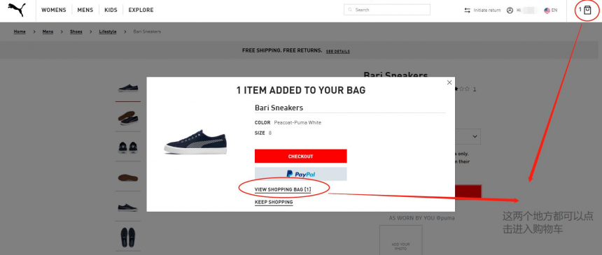 点击小弹窗上的【VIEW SHOPPING BAG】和页面右上角的图标处都可以进入购物车页面哦。
