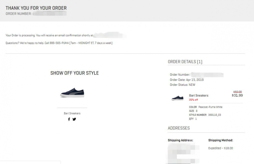 Puma US 现在并没有之前说的那么严,非要美卡美私,5姐亲测了国卡转运,账单地址是转运地址,妥妥的发货了,没被砍单~