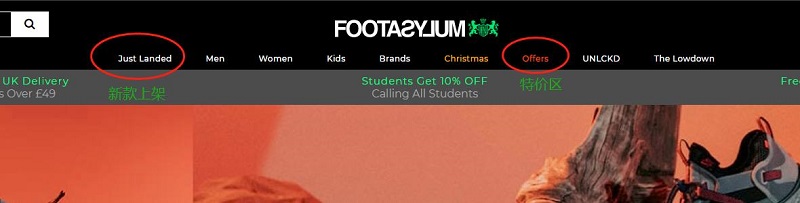 首页的横栏上有 JUST LANDED 新款发布、女款 WOMEN、男款 MEN、童款 KIDS 、BRANDS 品牌、OFFER 特价区 等分类,他们家的特价区也和其他商家一样,都是非常值得看看的,时不时就会有很多惊喜好价!