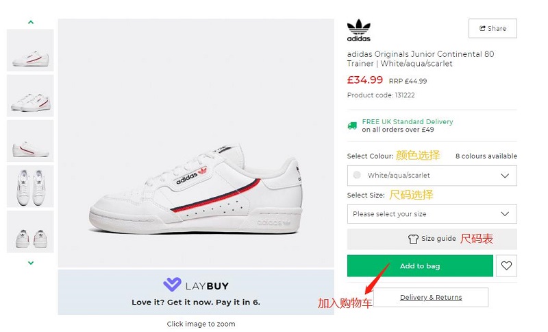 选好心仪的单品之后,点击【Add to Bag】就可以加入购物车。