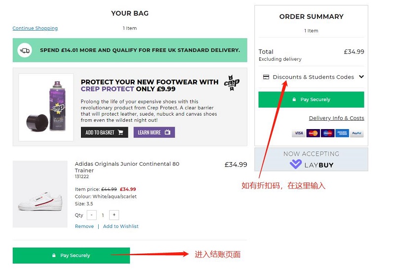 Footasylum 目前支持 Mastercard, Visa, Paypal 等付款方式,请注意,这家并不支持使用 American Express 付款哦!