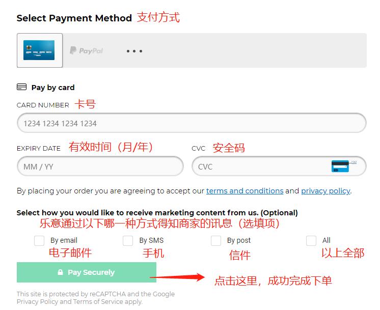 以上信息填写完毕并确认全部信息无误后,点击【Pay Securely】就可以顺利完成下单啦!